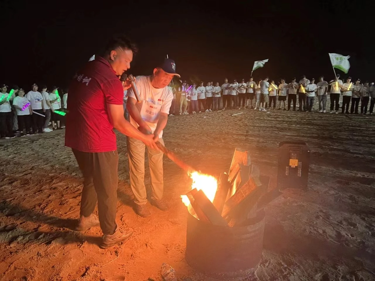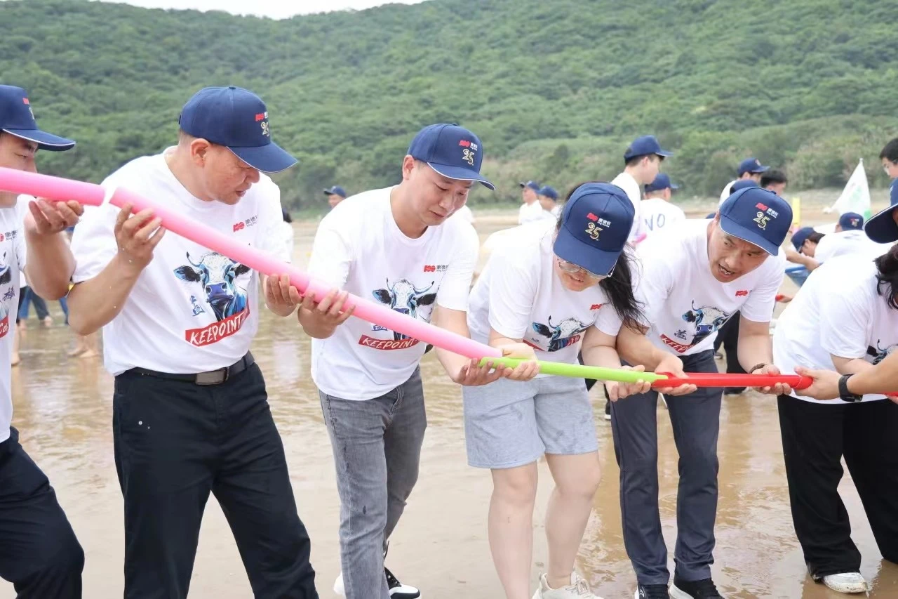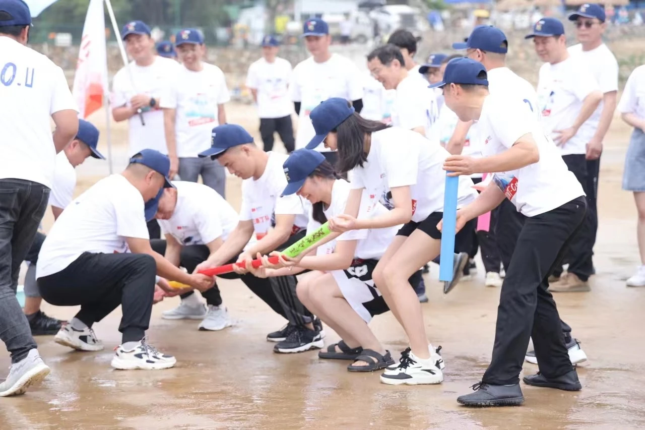 “市场争夺战”(沙滩拔河) 该游戏寓意在面对激烈的市场竞争环境中,唯有依靠团队的力量,一步一个脚印,劲往一处使,方能成功争夺市场。