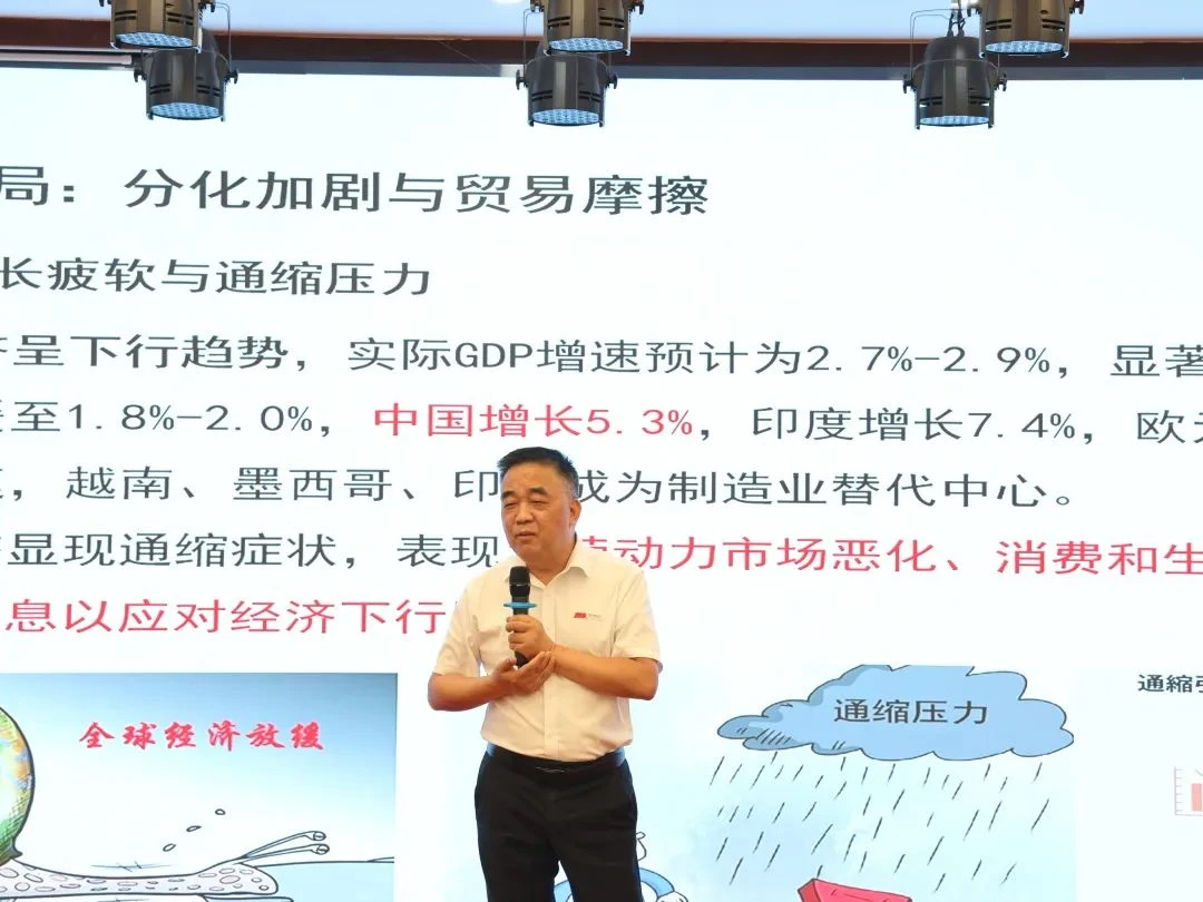 康德权企业总裁李浙烽先生为大家带来了题为《守正立根基,创新破万卷》的专题培训。他对上半年全球局势和农牧业局势进行了详细分析:在当前全球经济分化加剧、下行压力显著的大环境下,贸易摩擦频发,金融与债务风险攀升,农牧行业面临供给过剩与消费疲软的双重挑战。受“关税战+地缘冲突”双重冲击,市场不确定性增加,通缩风险加剧,畜禽养殖业产销形势严峻,基于此,他一针见血地指出:行业核心痛点集中在成本控制、健康养殖及效益优化上。