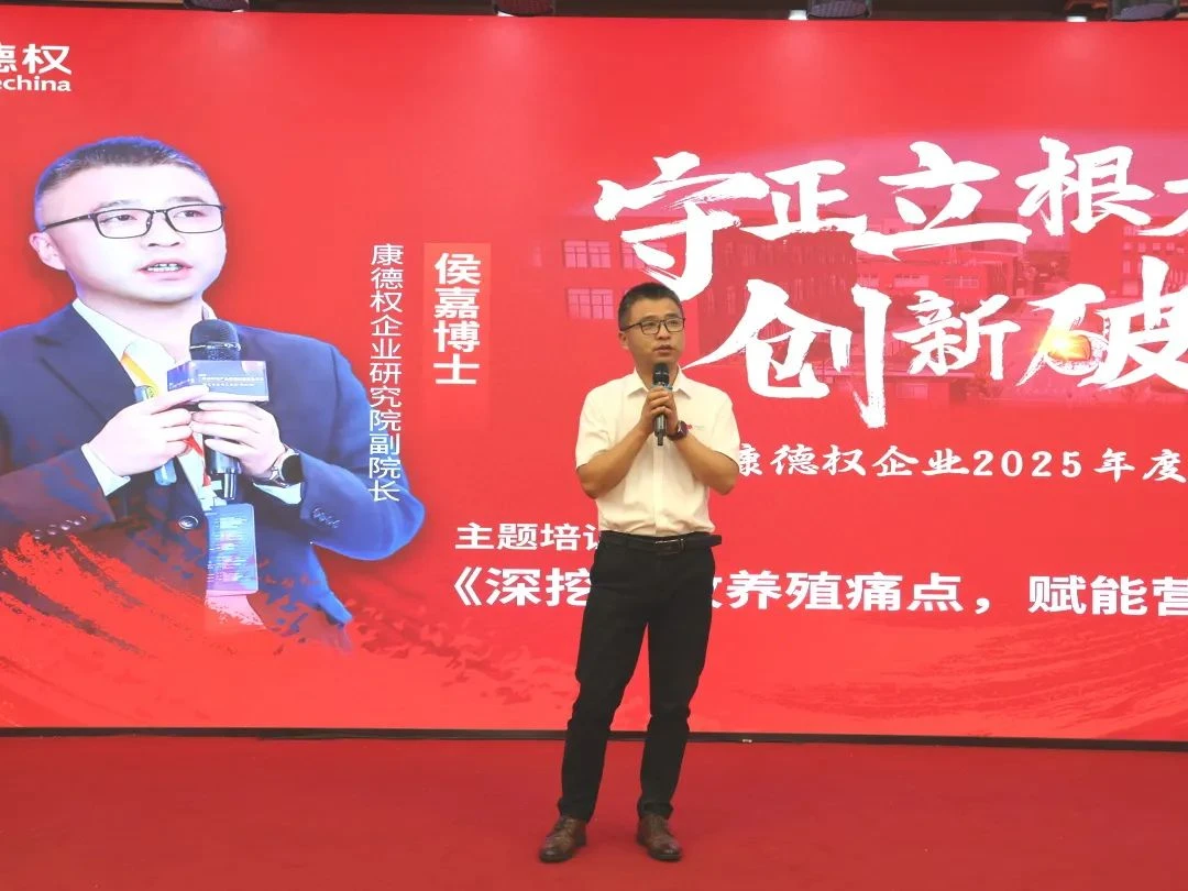 康德权企业研究院副院长侯嘉博士为大家带来了题为《深挖畜牧养殖痛点,赋能营销精准破局》的专题培训。他简明扼要地介绍了深挖痛点的定义、目的、好处及战略意义,并且详细分析了各动物板块的普遍痛点。并且他强调,挖掘与解决客户痛点是重中之重,在当前同质化竞争激烈的市场环境下,康德权凭借三大核心技术及强势的衍生产品,坚持以价值取代价格的破局之道,通过建立客户至上的服务理念,持续驱动创新解决方案的迭代升级。公司致力于构建核心技术"护城河",以对行业痛点的精准预判和深刻理解为切入点,在客户拜访中提供针对性服务,从而增强客户依赖度并形成口碑传播效应,最终实现工作效率的指数级提升。这一战略的核心在于以客户需求为中心,通过销售模式与服务研发的双重创新,打造差异化竞争优势,在提升客户粘性的同时推动企业可持续发展。