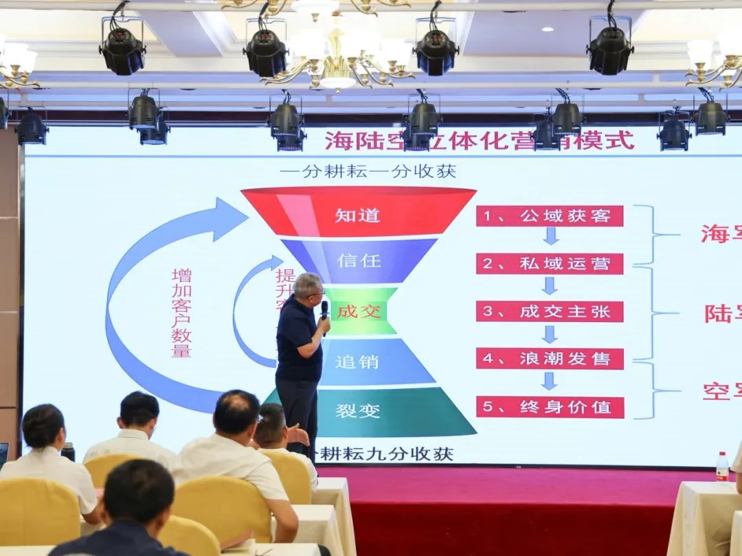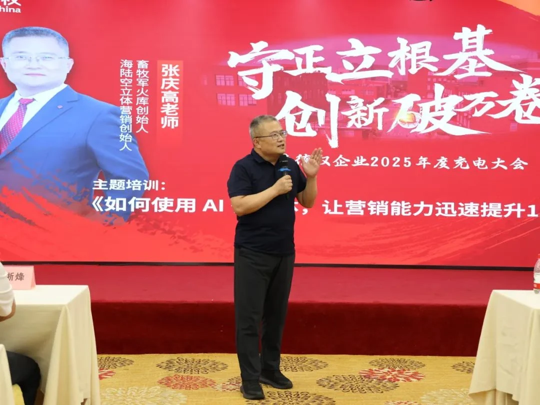 畜牧军火库创始人、海陆空立体营销创始人张庆高老师为大家带来了题为《如何使用AI智能体,让营销能力迅速提升10倍》的专题培训,集成营销困局-营销思路-营销方法-营销工具,助力提升营销能力。他在培训中指出,当前畜牧行业销售人员普遍面临客户拒访率高、产品同质化严重等营销困局,这既是挑战更是机遇——危机育新机,变局开新局。传统扫街式拜访屡屡碰壁时,我们应当"行有不得,反求诸己",从调整心态开始突破:变推销思维为服务思维,将产品知识转化为解决方案。张老师在现场开展沉浸式教学,通过"理论讲解+实操演练"的方式,手把手指导学员掌握AI营销工具的应用技巧,帮助大家快速提升精准营销能力,实现营销效能的智能化升级。通过生动案例可见,善用互联网工具能实现精准客户画像,AI助手可优化客户拓展,数字化平台则能持续创造新兴效益。在此基础上构建"海陆空立体化营销模式":客流量(海军)、转化率(陆军)、利润率(空军),持续流量转化,最终形成差异化竞争优势,实现营销效能的全面提升。