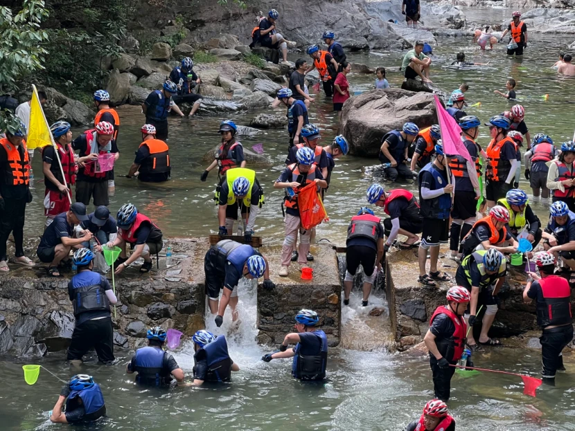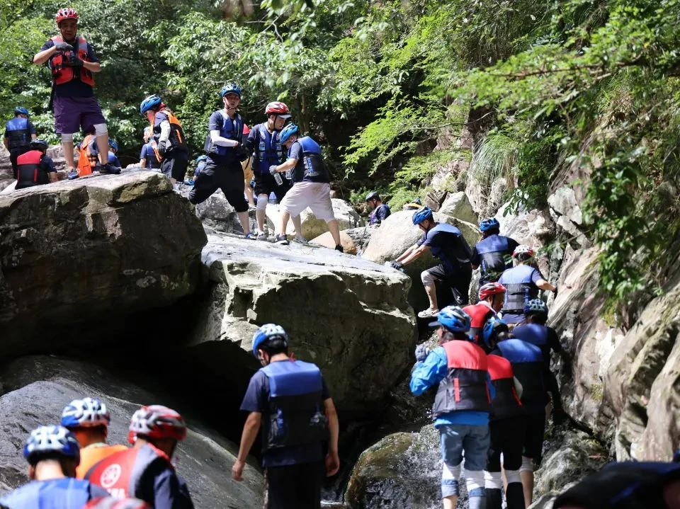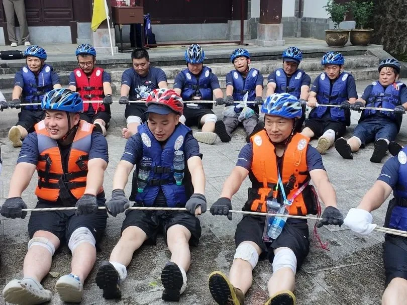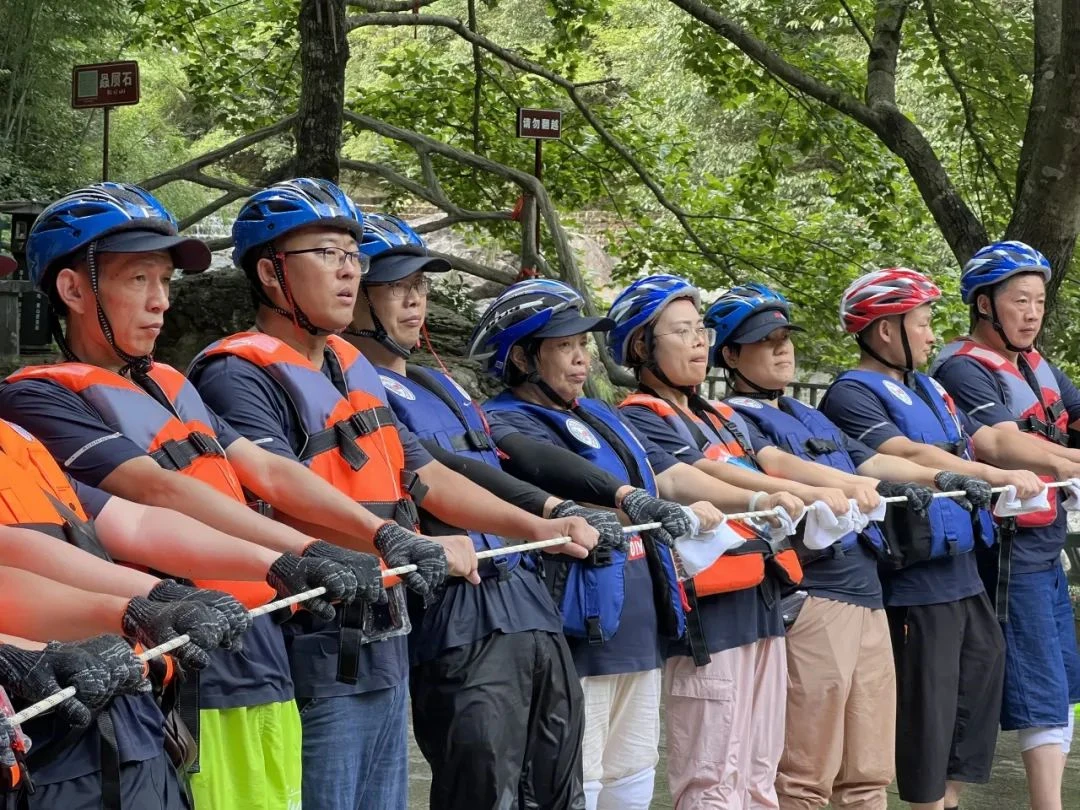 大家分成了八支战队:新恩队、大鹏队、腾龙队、战狼队、守正创新队、老六队、柒开得胜队、蛟龙队,共同在黄山九龙瀑峡谷的激流中,展开了一场智慧与勇气的较量。