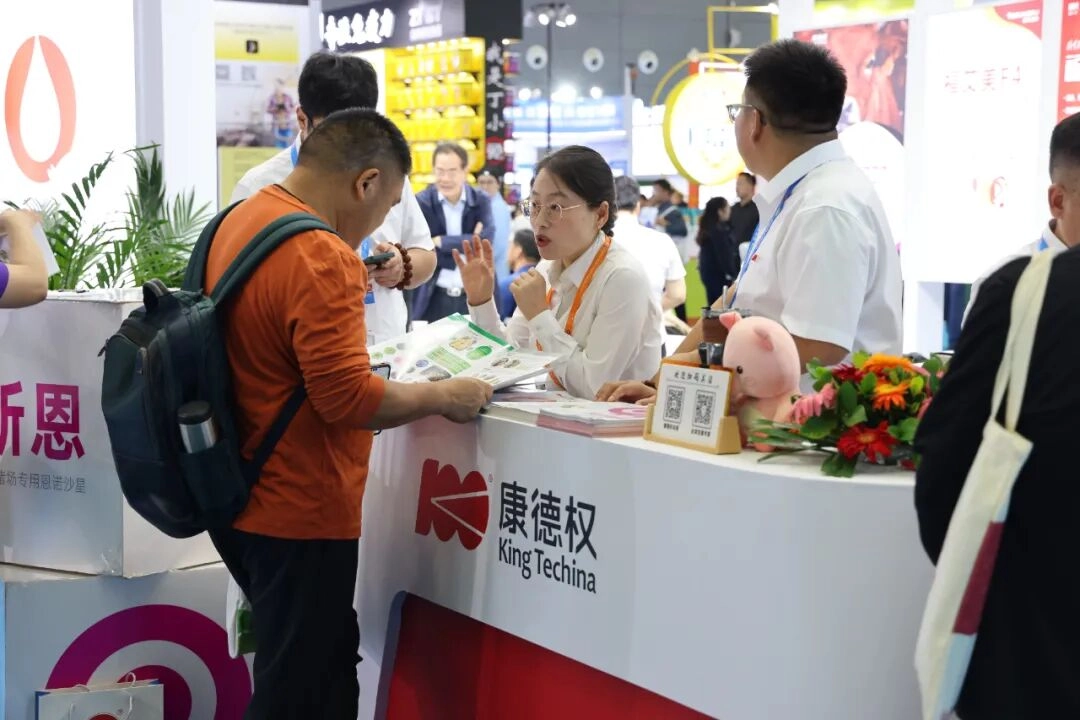 展会期间,康德权与康丸德川的联合展位吸引了大量行业专家、企业代表与养殖户前来交流。双方重点交流了包膜技术、共生驯化技术与检测服务技术三大核心技术,并系统介绍了基于这些技术的猪场专用包膜产品与应用方案。其中,“不苦不伤胃”的新恩®产品备受关注;而作为本次展会亮点,“福艾美® F4”猪场除臭、降本、回肠炎控制整体解决方案也引发了广泛关注,该方案聚焦回肠健康,从源头实现除臭,帮助猪场实现养殖成本控制实现降本增效与绿色发展。