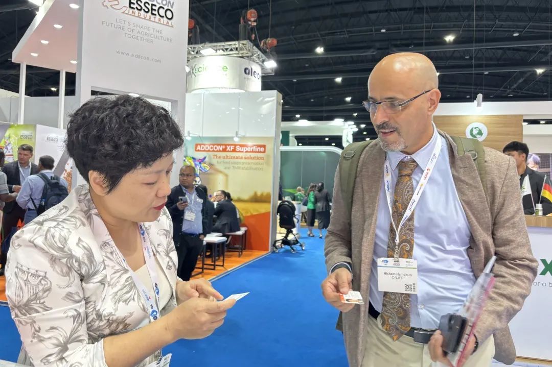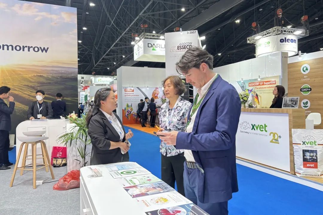 展会现场,康德权展位前人群涌动,聚集了大批来自畜牧行业的专家和从业者,他们被展位上专业的技术呈现和产品展示深深吸引,聚精会神地聆听康德权国际市场部同事的讲解与介绍,并对康德权的三大技术(包膜技术、共生驯化技术、检测服务技术)在研发生产中的实际应用以及其产品在提升养殖效率、改善动物健康方面的显著优势表达了高度认可与赞赏。此次展会上,康德权凭借卓越的产品品质和前沿的技术创新,不仅展现了其行业领先的创新研发能力,也赢得了全球客户的高度信赖与广泛赞誉,进一步巩固了康德权在全球畜牧行业中的领先地位。